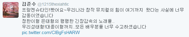 ¡Mi Sungtae-hyung! y incluso Daejong-hyung.. Estoy tan agradecido con todos los actores que actuaron en este musical