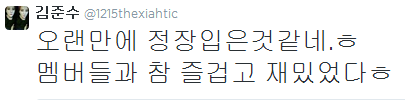 [TRAD] Parece que estoy usando un traje después de un largo tiempo. heh Disfruto mucho estar con los miembros y divertirnos heh