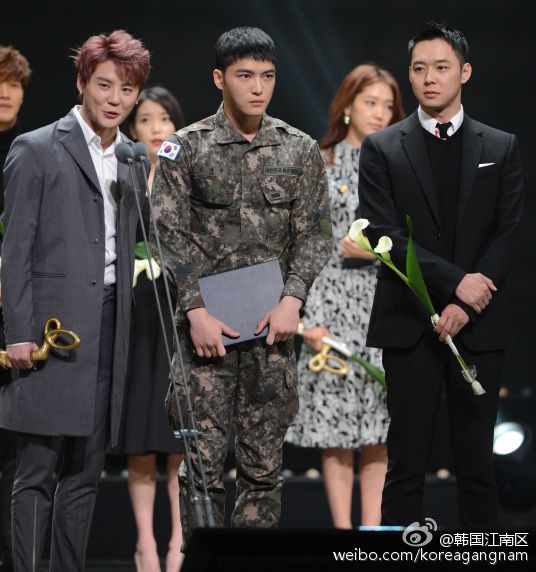 [OTRO WEIBO] 151029 Korea Gangnam compartió una foto de JYJ en los '2015 Korean Popular Culture & Arts Awards'