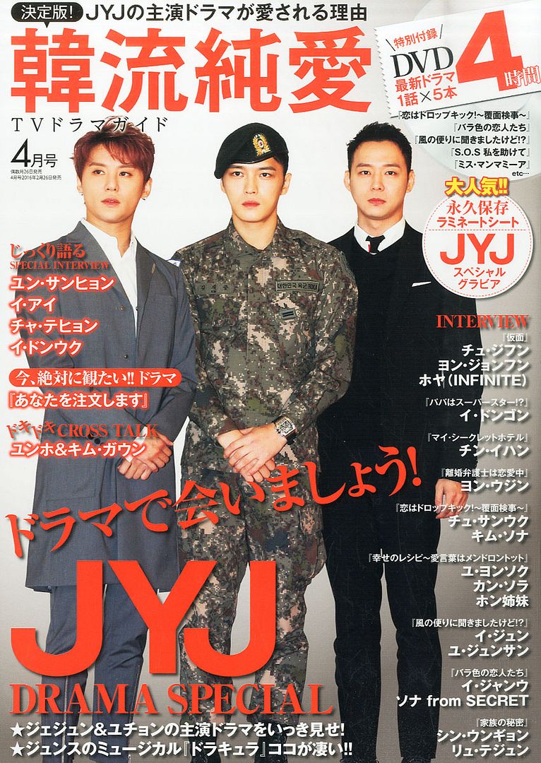 [INFO] 160226 JYJ en la portada para la edición de abril de la revista japonesa “Hanryu Pure Love TV Drama Guide”