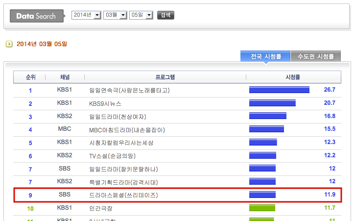 AGB Nielsen Korea: Nacional 12.2% – Seoul 14%
