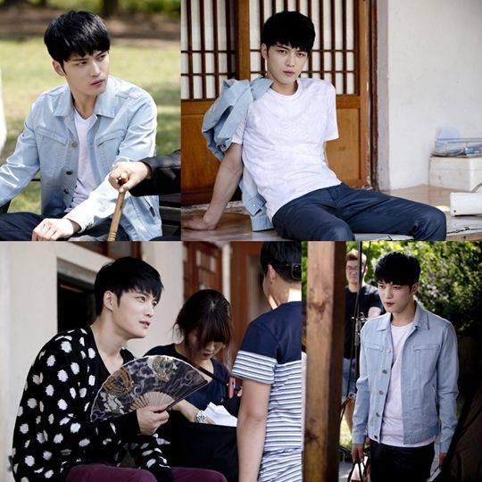 Las imágenes muestran a Kim Jaejoong sentado en la sala de estar de la casa que el alquilo en el drama, abanicándose mientras habla con los miembros del personal y se vuelve a poner serio nuevamente cuando retoma la filmación.