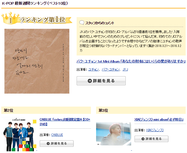 [INFO/RANKING] 160329 Ranking semanal de Koretame – #1 Park Yuchun ‘How Much Love Do You Have in Your Wallet’ & #3 XIA Junsu ‘Just Yesterday’